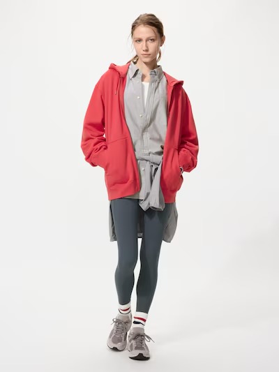 そんなユニクロの「スウェットフルジップパーカ」(3990円)は、肩幅や身幅、リブ幅を現代的に調整したレギュラーフィットのデザインで、すっきりとしたシルエットが特徴のフルジップパーカです。製品洗い加工によってカジュアルな風合いが生まれ、毛抜けしにくい糸を使用しているため、インナーに糸くずが付きにくく、重ね着にも適しています。さらに、スピンドルヘッドやアイレット、ファスナーには上質感のあるメタル素材を採用し、細部にもこだわりが感じられるのも魅力。