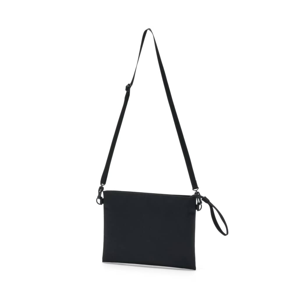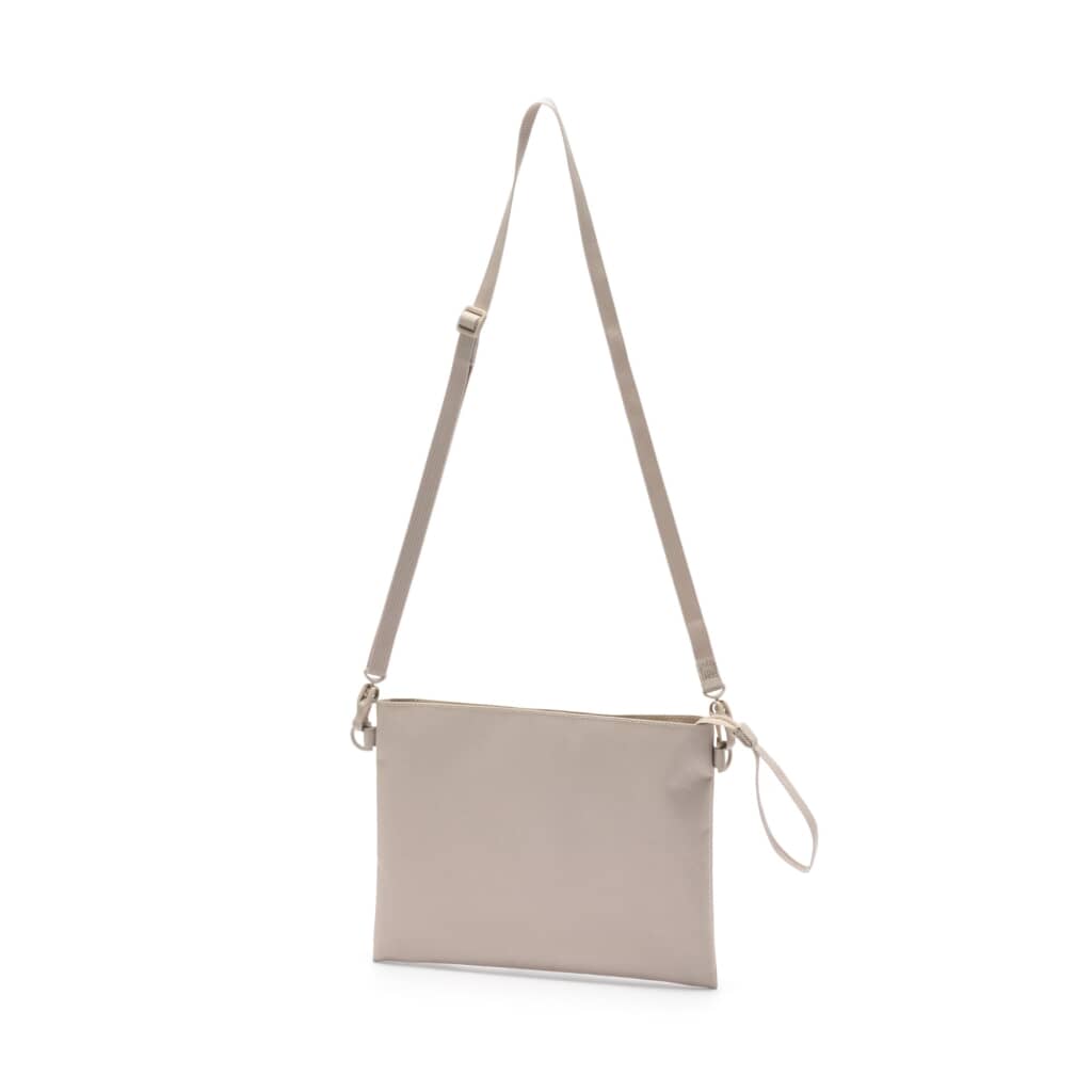 ショルダーベルトは外すことができ、ポーチとして使うことも可能。再生素材を使用した生地には、一部に撥水加工を施しています。