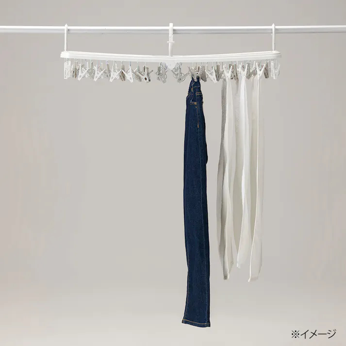 50ピンチの大容量タイプで、タオルや下着、靴下などを一度にたくさん干せるのも魅力。ピンチの配置や種類にも工夫があり、デリケートな布地にも対応。洗濯物のサイズや用途に応じて使い分けやすくなっています。また、洗濯物の重みで傾きにくい構造になっているのもうれしいポイントです。