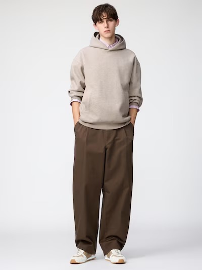 ユニクロの「バレルパンツ」は、裾後ろにダーツを入れることで、より立体的なシルエットを実現したパンツ。コットン100%でハリ感のあるツイル素材を使用し、上品でしっかりとした風合いに仕上げています。ウエストはドローコード入りでサイズ調整が可能。サイドに緩やかな丸みを持たせたワイドシルエットが特徴で、ゆったりとしたフィット感ながらテーパードシルエットですっきりとした印象です。カラーはブラック、オフホワイト、ブラウン、ネイビーと使いやすい4種類、価格は3990円です。