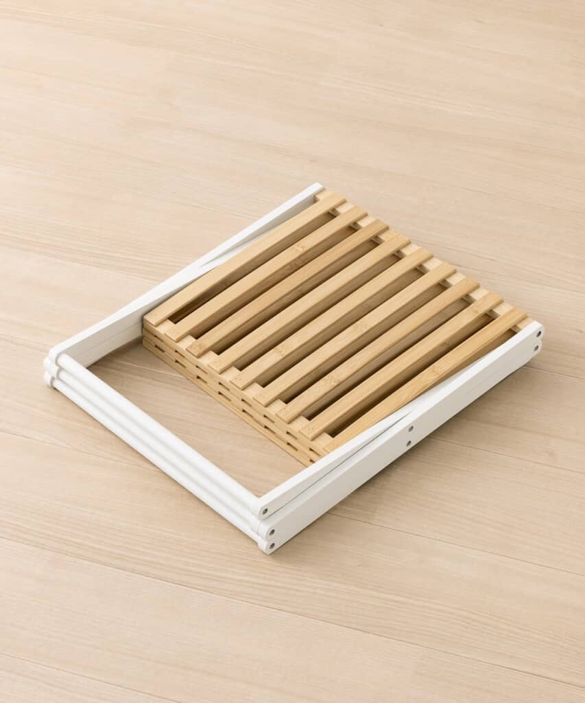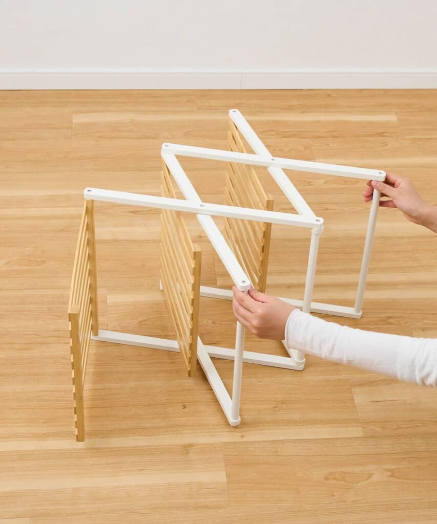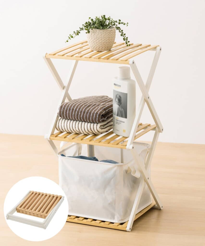 購入者からは、「しっかりとした作りなのにおしゃれでコンパクトに折り畳むことも出来購入してよかったです」「スッキリ片付きます」「シンプルでとてもかわいいです」「ちょっとした隙間に簡単に設置でき、タオルやパジャマなどを置くのに便利」「しっかりした作りで安心感あり」といった声が寄せられています。