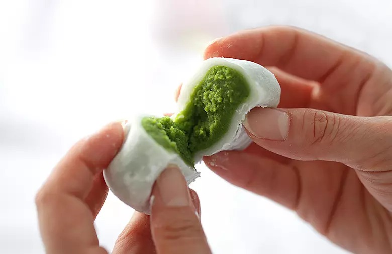 抹茶は熱に弱いため、職人が混ぜるタイミングを見極め、色や香りを最大限に引き出しているのがポイント。ふんわり柔らかな大福生地で包み込むことで、口に入れた瞬間にじゅわっと広がるうまみとまろやかな口当たりを実現しています。色・味・香りが変化しやすい抹茶を使用しているため、おいしく食べられるようにと消費期限を3日間としているのもこだわりがうかがえますね。