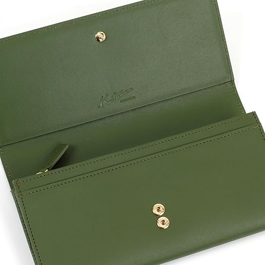 色使いを抑えた刺しゅうなので、かわいらしさがありながら甘くなりすぎず、大人でも取り入れやすい仕上がりです。かぶせの留め具はダブルホック式で、中身の量に合わせて留め位置を調整できます。サイズはタテ10×ヨコ20×マチ3センチ、重量は160グラム。素材は牛革、裏地は綿です。見た目の愛らしさと、毎日使う財布としての実用性を無理なく両立しているのが、このシリーズの魅力です。