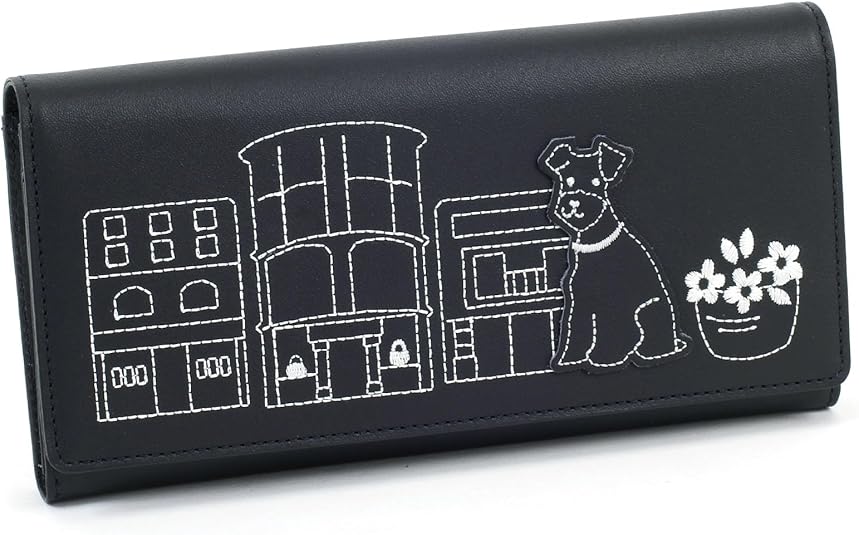 キタムラの「長財布 PH0802」シリーズは、収納力のあるかぶせ長財布に、ワンちゃんやネコちゃんのモチーフを上品に取り入れたシリーズです。横浜元町を背景に、ワンちゃん、ネコちゃんの姿をパッチで立体的に表現しているのが大きな特徴で、本体カラーごとにパッチのデザインが異なります。カーキは柴犬、ダークブルーはミニチュアシュナウザー、ブルーグレーはチワワ、キャメルは猫、ベージュはトイプードルがデザインされています。
