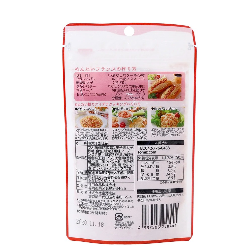 そんな富澤商店の「乾燥明太子(50g)」は、明太子の風味をぎゅっと凝縮したフレークタイプの調味素材です。パスタやおにぎり、トーストのトッピングなどにそのまま使えるほか、バターやマヨネーズと合わせれば手軽にフィリングとしても活躍します。生の明太子に比べて保存性が高く、ストックしておける点も魅力。日々の料理にさっと取り入れやすく、味のアクセントを加えたいときに重宝します。
