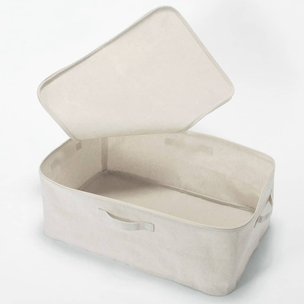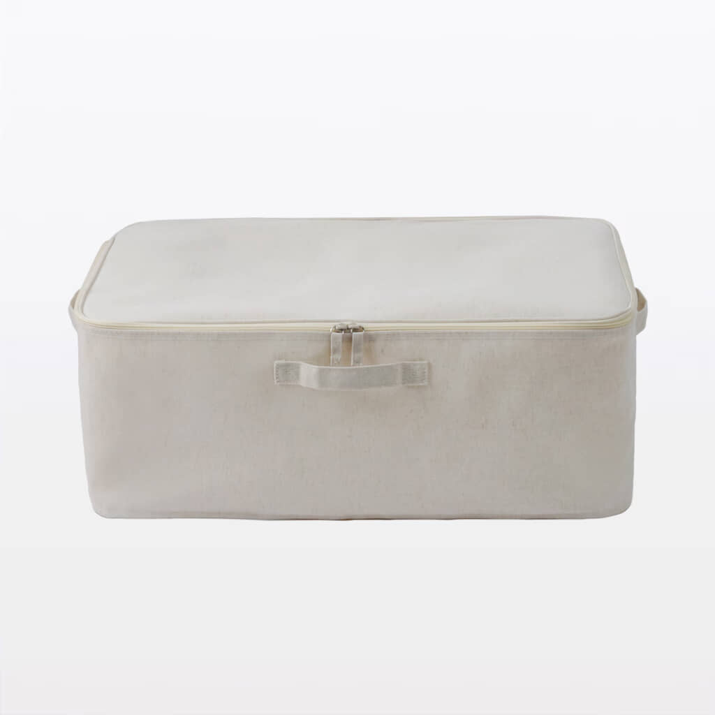 無印良品公式サイトでは、「クローゼットの枕棚60cmにぴったりサイズで、こたつ布団を収納するために購入しました。205センチの円形こたつ布団が無事収納でき、嬉しかったです」「大人用の衣類の衣替えで使用しました。これまで圧縮袋で衣替えしてましたが、圧縮により服に皺が寄ってなかなか取れず。こちらの衣装ケースは思ったよりも容量があり、綺麗に畳んで入れれるため畳み皺程度で済みそうです」「衣替えの際に利用。麻素材なため、湿気がこもらず、服が呼吸できて安心して保存できます」「くたらず入れやすい!シーズンオフの服をしまうために購入しました。ポリエステルが入っているので、くたらず、入れやすいです」などの声が購入者から上がっていました。