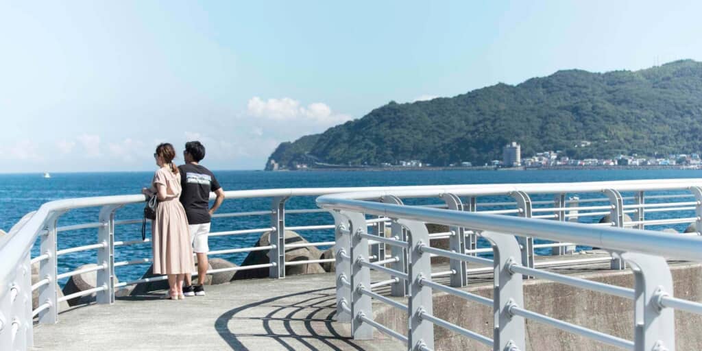 伊東マリンタウンは、海沿いの立地を生かして、食べる、買う、くつろぐをまとめて楽しめる道の駅です。レストランやショップ、日帰り温泉、足湯、遊覧船などを備えた複合施設で、休憩だけでなく観光の立ち寄り先としても使いやすいのが特徴です。国道135号沿いにあり、伊東駅からはバスで約5分でアクセスできます。海辺の空気を感じながら、伊豆らしい時間を過ごしやすいスポットです。
