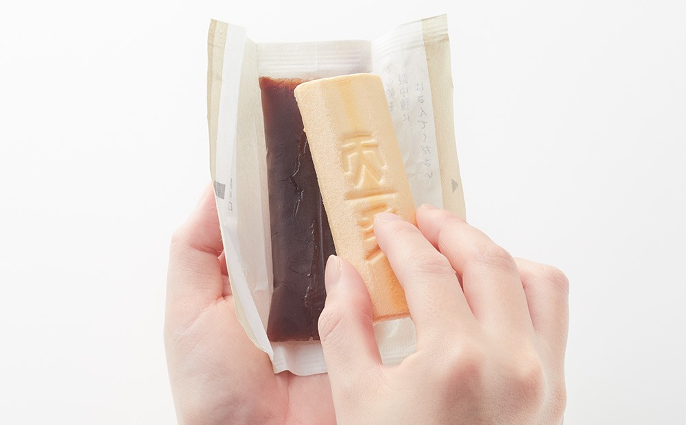最大の魅力は、食べる直前に自分で挟むことによって生まれる「究極のサクサク感」。通常の最中は時間が経つと餡の水分で皮がしっとりしてしまいますが、ふくみ天平はいつでも出来立ての香ばしさを楽しめます。サクッと軽い皮の音の後に、北海道産小豆の瑞々しい餡と、もっちりとした食感の組み合わせが人気な商品です。