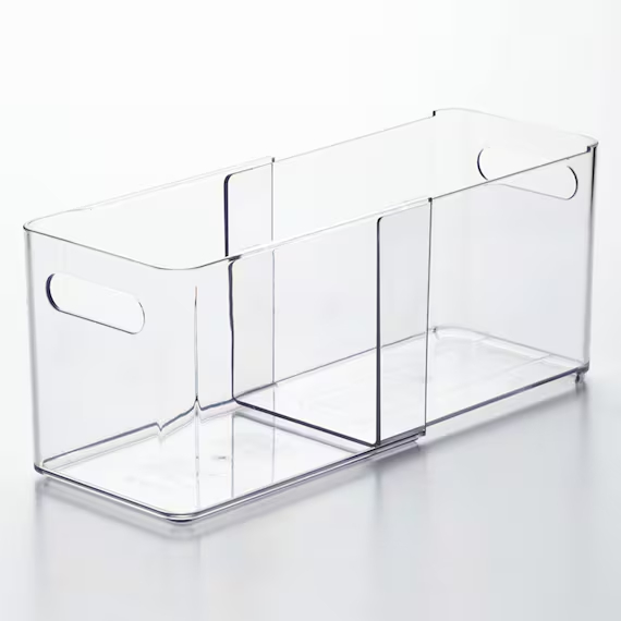 棚の中やキッチンのカウンター、洗面所の収納、ほかにもキッチンツールの整理に使うのはもちろん、リビングで雑誌やリモコンをまとめたり、クローゼットで靴下やハンカチなどの小物を分類するのにも便利です。同シリーズにはサイズ違いや取っ手付きタイプなどのバリエーションもあり、積み重ねて使えば非常にスタイリッシュに生活空間をまとめることができますよ。