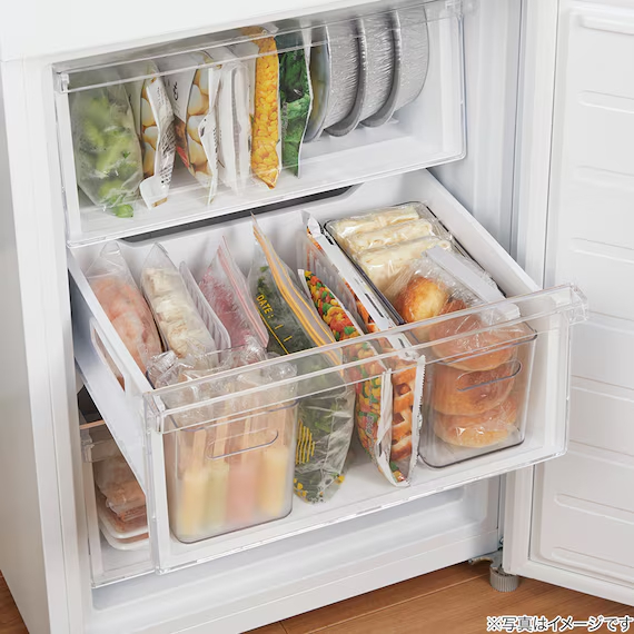 「伸縮できる野菜・冷凍庫トレー(スリム)」(799円)は、冷蔵庫・冷凍庫内の整理にぴったりなニトリのアイテム。食材を立てて収納できる設計で、冷凍食品やカット野菜、作り置きなどを縦に並べることで、重なりを防ぎ、どこに何があるか一目で把握。庫内の迷子食材を減らすことができます。