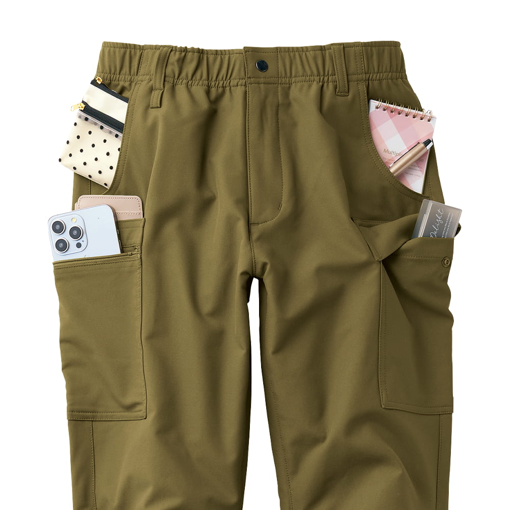 購入者からは、「超ストレッチ、蒸れなし、ウェストゴムでジャストフィット。タイト目のシルエットが欲しい方にはお勧めです」「伸びが良くて動きやすいし、沢山あるポケットが本当に便利です」「これ一枚あれば迷うことなく快適に過ごせます!」「ここに欲しい!というところにちゃんとファスナー付きと無しのポケットがあり、シルエットも綺麗です。洗濯後の乾きも早く、撥水機能も良し。黒を買いましたが、タオルなどと一緒に洗濯しても白い綿ぼこりが付くこともありません。膝をつく動きが多いので、今まではすぐ膝部分が抜けてしまうことが多かったのですが、生地がしっかりしていてこれは長持ちしそうです。思い切って3本まとめ買いして正解でした!」といった声が寄せられています。