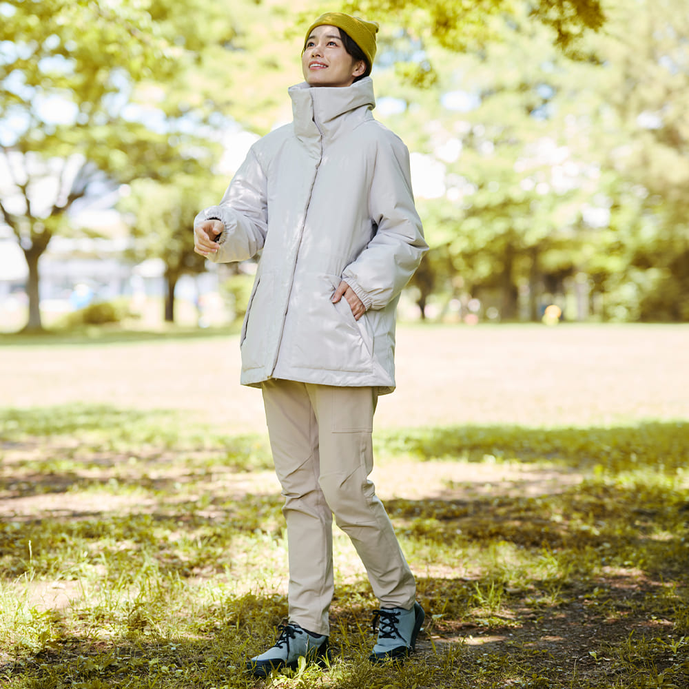「レディースダブルクロスライト カーゴパンツ」(2500円)は、ワークマンらしい高機能を備えたレディース向けボトムス。軽量かつ動きやすいストレッチ素材を使用しており、しゃがむ・歩くといった動作もスムーズ。長時間の着用でもストレスを感じにくい設計になっています。さらにカーゴパンツならではの多収納仕様で、小物をしっかり持ち運べる実用性も魅力です。耐久撥水加工によって水をはじきやすく、急な雨やアウトドアシーンにも対応。防汚機能やUVカットもあり、アクティブシーンでも使いやすくなっています。