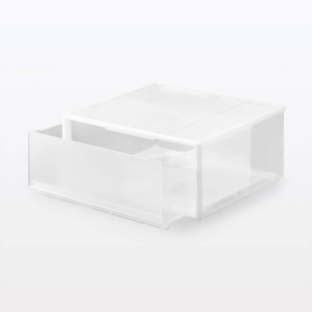 無印良品の“半透明のワイドな収納ケース”が、組み合わせ自由でスペースや用途に合わせて選べ、家の中がスッキリ片付くと人気を集めています。