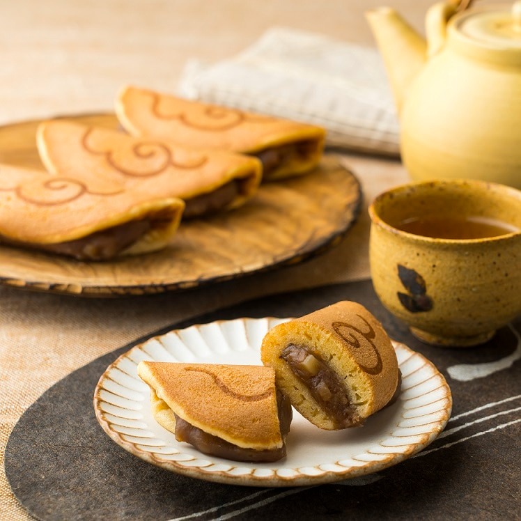 叶 匠壽庵の「羽雲(栗)」は、ふわふわでもちもちとした食感が魅力のどら焼き。一般的な丸い形のどら焼きとは異なり、半円のようなフォルムで包まれているのも特徴です。軽やかで新食感のどら焼き生地に、熊本産とフランス産の栗を使用したペーストを合わせており、栗の豊かな味と香り、そしてもちっとした食感を楽しめます。