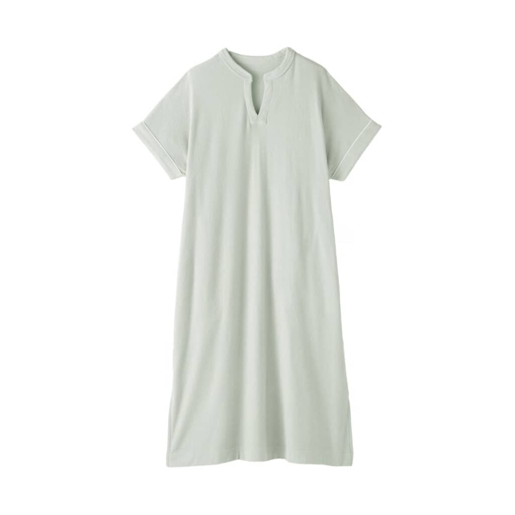 無印良品の「婦人 着るタオル 両面パイル 半袖ワンピース」は、タオルに包まれているような心地よさが魅力の、両面パイル仕様のワンピース。オーガニックコットンを使用し、両面のループ部分には綿糸を採用することで、やわらかくやさしい肌あたりと伸縮性を実現しています。お風呂上がりにも適した快適な着心地で、デザインは締め付け感のないゆったりシルエット。体のラインを拾いにくく自然に体型をカバーしつつ、リラックスした着心地を得られます。またキーネックで抜け感を演出し、サイドポケット付きで日常使いから外出、旅行やプールの行き帰りまで幅広く活躍。カラーはペールグリーン・ダークネイビー・杢グレーの3種類、価格は税込み3990円で販売されています。