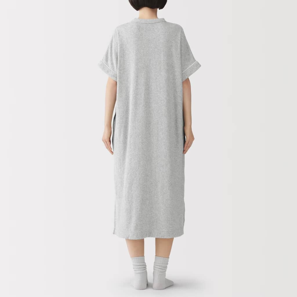 無印良品から販売されている「婦人 着るタオル 両面パイル 半袖ワンピース」が、名前の通りまるでタオルを着ているような肌触りで着心地がよく、汗をかいても不快にならないのでお風呂上りにもさっと着やすいと高評価を集めています。