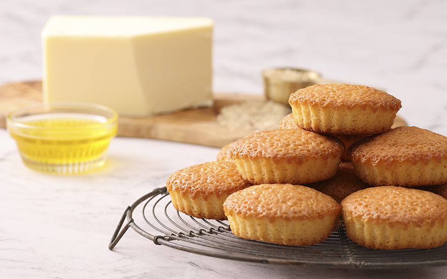 「こがしバターケーキ」は、フィナンシェやマドレーヌとは異なる独特の食感と風味が特徴の焼き菓子。大阪府泉佐野市の老舗菓子店「むか新」が手がけるロングセラーで、大阪土産の定番にもなっています。