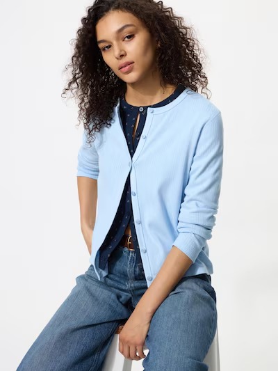 春から初夏にかけて、軽やかに羽織れて着こなしの鮮度も上げてくれる1枚として、ユニクロの「ポインテールカーディガン」が展開されています。繊細なステッチ柄が生むヴィンテージ調の表情に加え、やわらかな肌ざわりと通気性のよさを兼ね備えているのが特長です。トップス感覚でも羽織りでも使いやすく、デニムからワンピースまで幅広く合わせやすいことから、日常使いに取り入れやすいカーディガンです。
