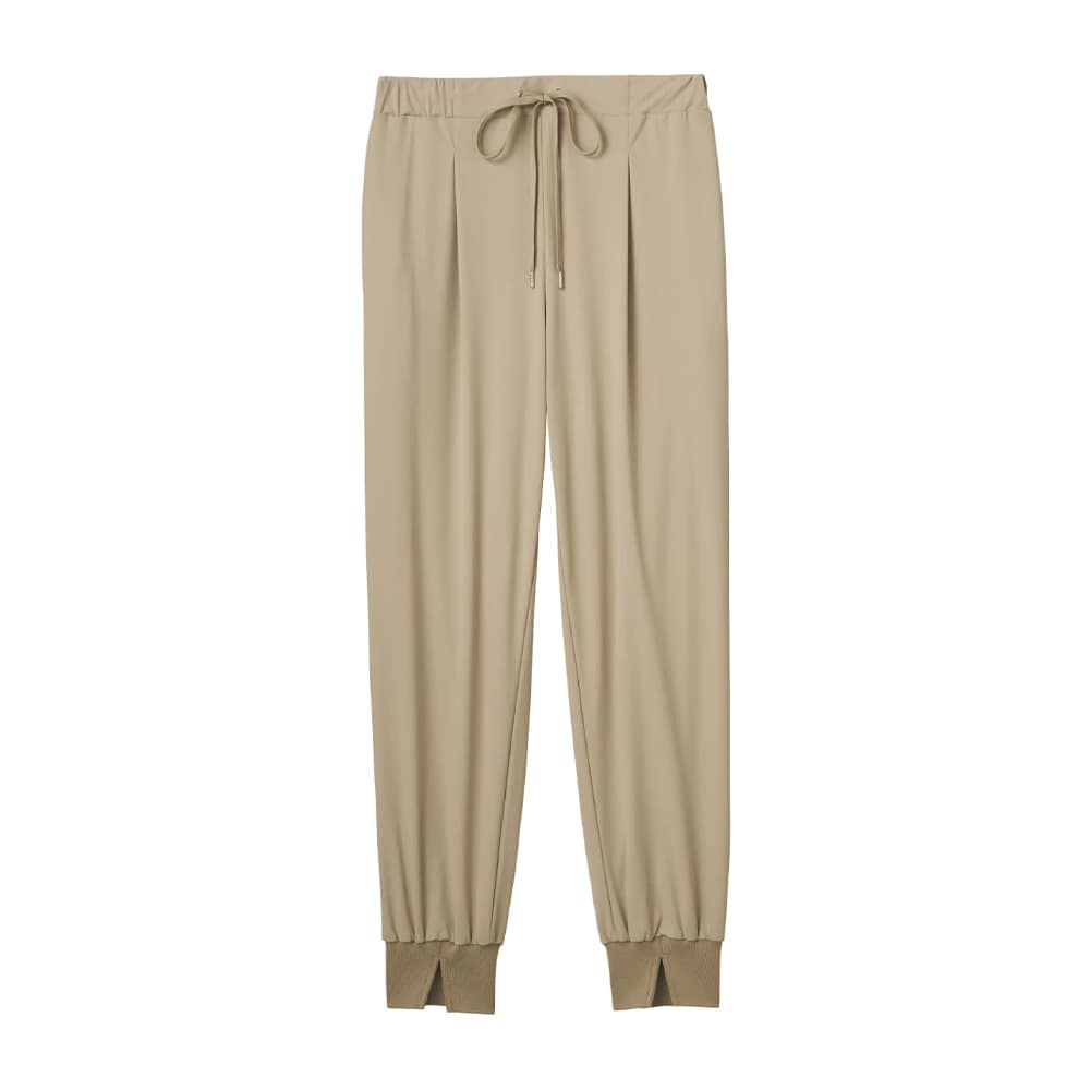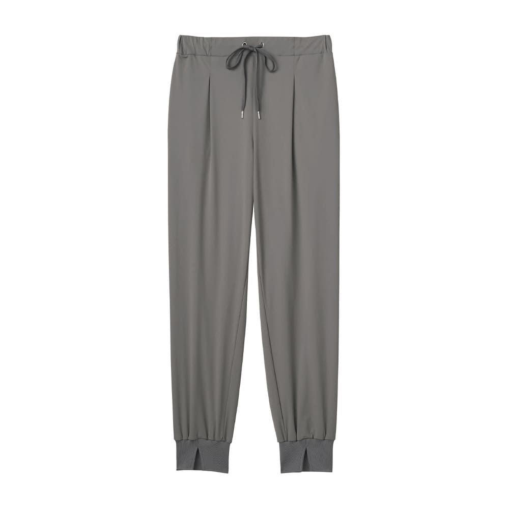 ユニクロの「ウルトラストレッチアクティブワイドパンツ」(2990円)は、ほどよいボリュームのワイドストレートパンツです。「ウルトラストレッチ」素材を使っているため、動いたときのつっぱり感が出にくく、しゃがむ・歩く・自転車に乗るといった日常の動きがスムーズ。着た瞬間にひんやり感じる接触冷感的な着心地も特徴で、UVカット(UPF50+)機能付きなので気温が高い日の外出でも快適です。デザイン面では、フロントがフラットでクリーンに見えるのがポイント。ウエストは内側のひもでサイズ調整できる仕様なので、ベルトなしでもフィット感を整えやすいつくりです。