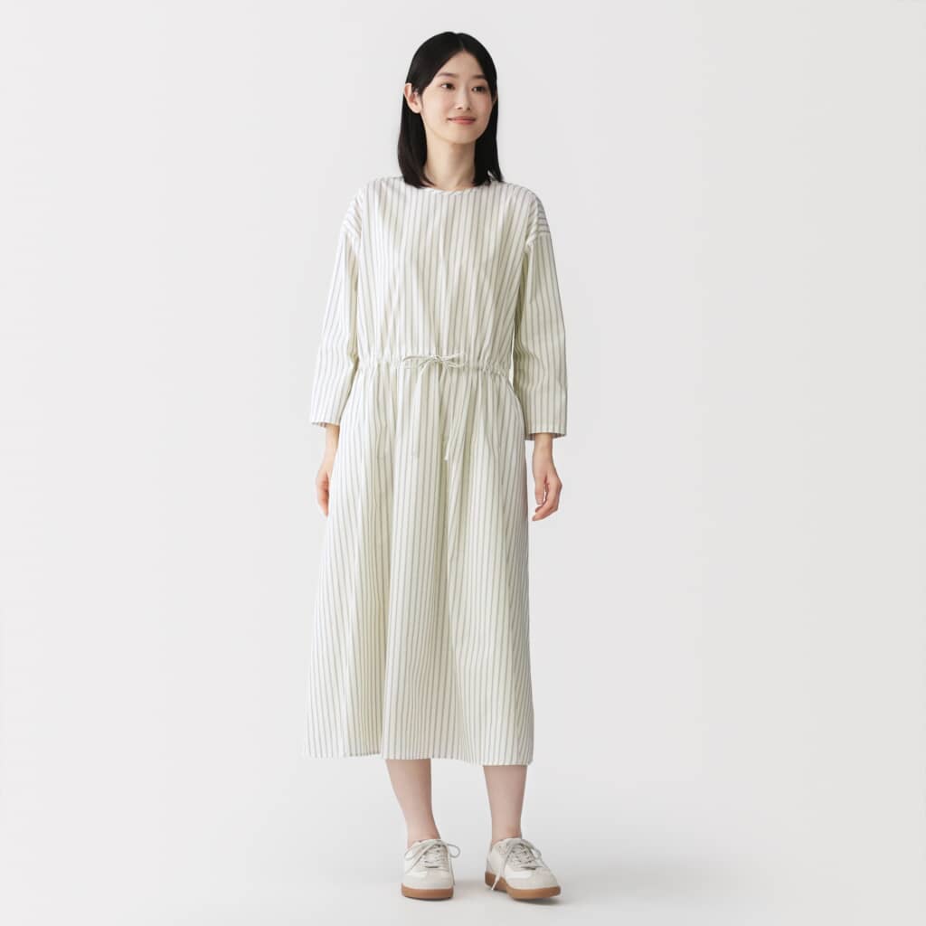無印良品から販売されている“ワンピース”が人気を集めています。かわいらしいデザインで、スタイルも良く見えると好評のようです。