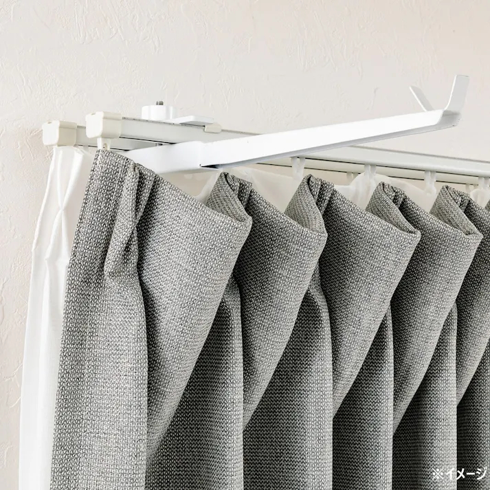 最大の特徴は、カーテンレールにセットするだけというお手軽仕様。穴あけ不要で取り付けられるため、賃貸住宅でも使いやすく、気軽に部屋干し環境を整えられます。省スペースで日常生活の動線を邪魔せず、洗濯の効率をアップできます。もちろん、設置したままでもカーテンの開閉が可能な設計です。耐荷重は1個あたり約5kg、合計約10kgまで対応しています。