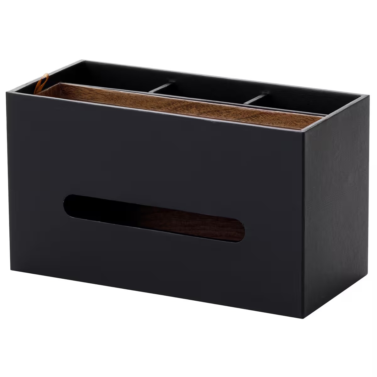 ニトリの「リモコンティッシュボックス(NN01)」は、ティッシュケースとリモコン収納をひとつにまとめた、省スペースで使いやすい収納アイテム。付属パーツでリモコンケースの深さを調節できるため、手持ちのリモコンに合わせて使いやすくアレンジできるのが特徴です。サイズは幅26センチ×奥行12センチ×高さ15センチ、重量は約620グラム。カラーはホワイトウォッシュとミドルブラウンの2種類、価格は1990円です。ごちゃつきがちな手元まわりをすっきり整えたい人は、ぜひチェックしておきたいアイテムといえるでしょう。