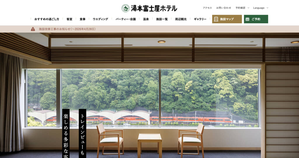 第2位は、「湯本富士屋ホテル」でした。湯本富士屋ホテルは、2023年に創業50周年を迎えた老舗の宿です。客室は和室・洋室・和洋室と幅広くそろい、バリアフリー対応の部屋もあるため、家族旅行や3世代旅行なども楽しめます。