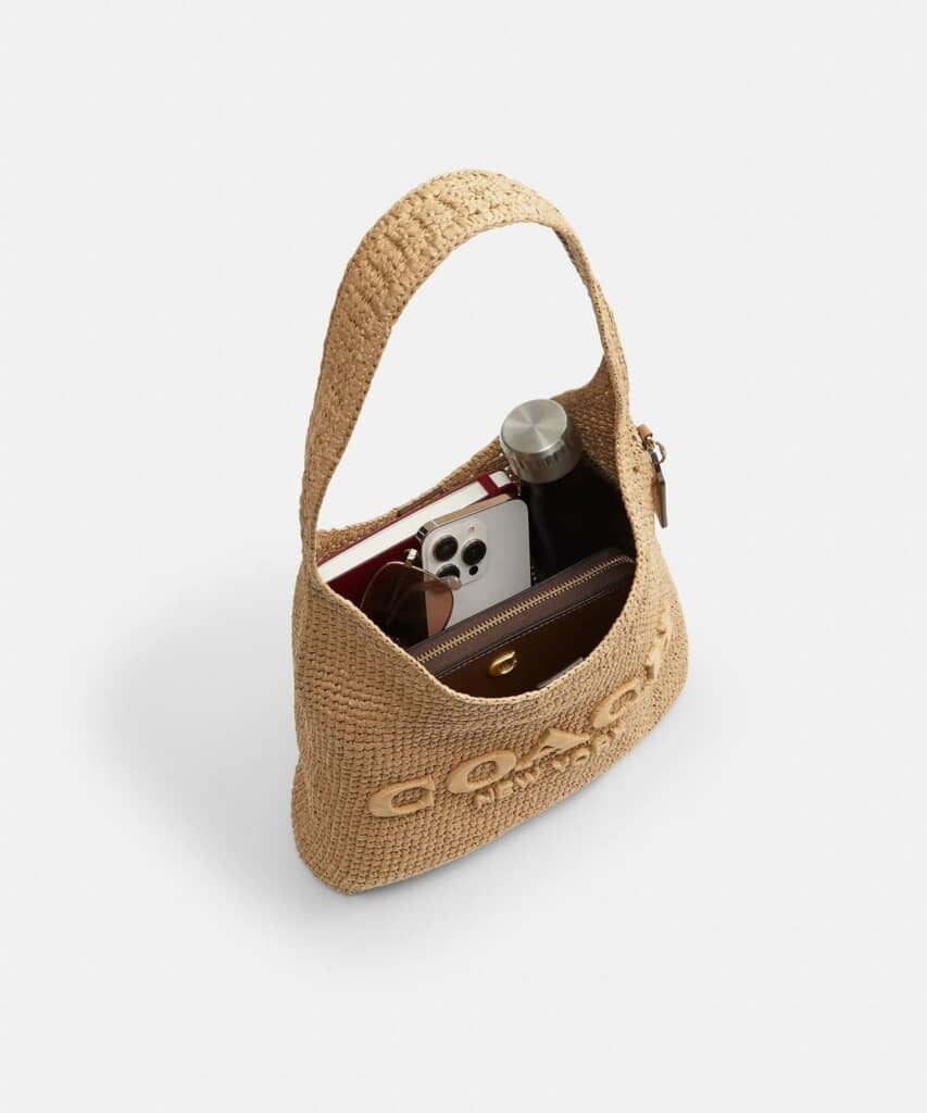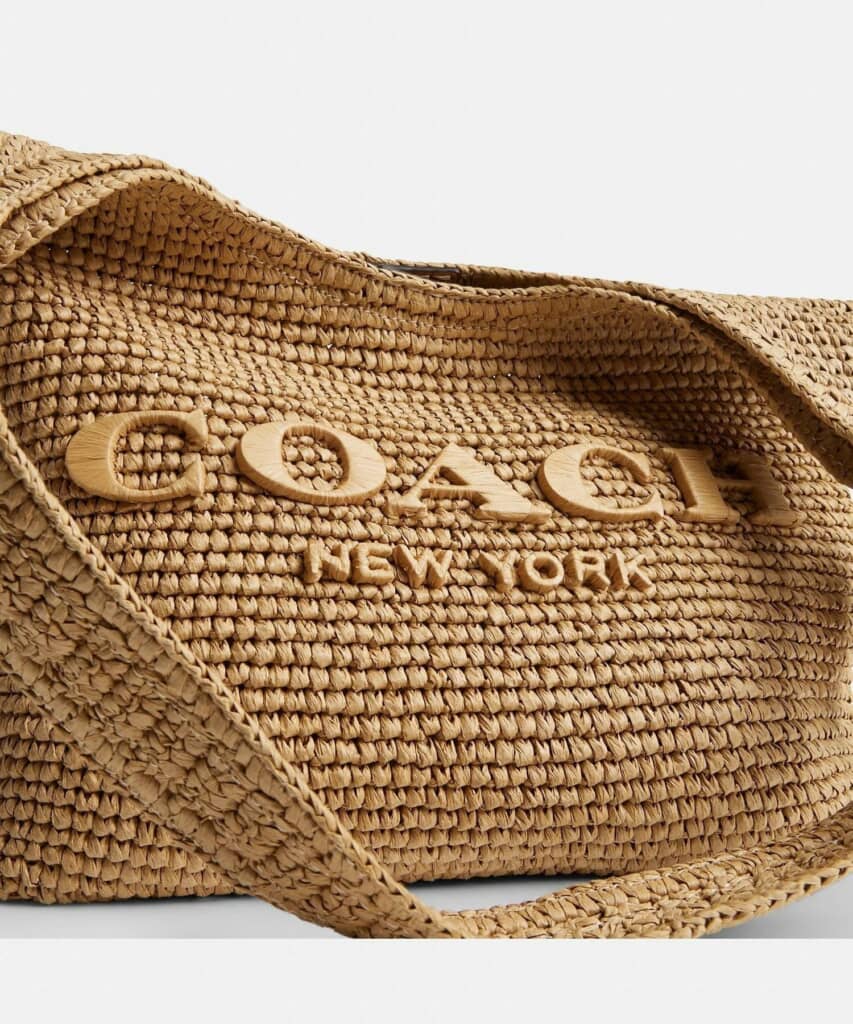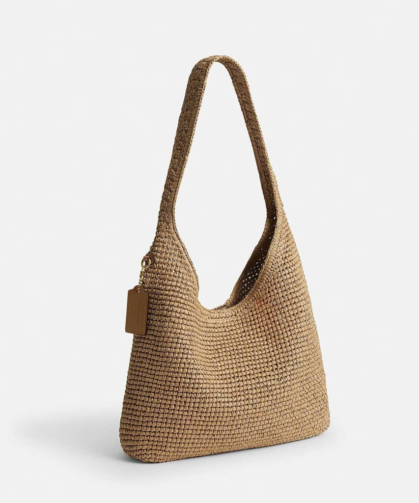 COACH(コーチ)の「ブルックリン ショルダー バッグ 28(かごバッグ)」は、ニューヨークの空気感を感じさせるミニマルなデザインが特徴の、夏らしいストロー素材をメインにしたショルダーバッグです。ホーボーバッグらしいやわらかなフォルムで、肩に掛けるだけで自然な抜け感を演出できます。