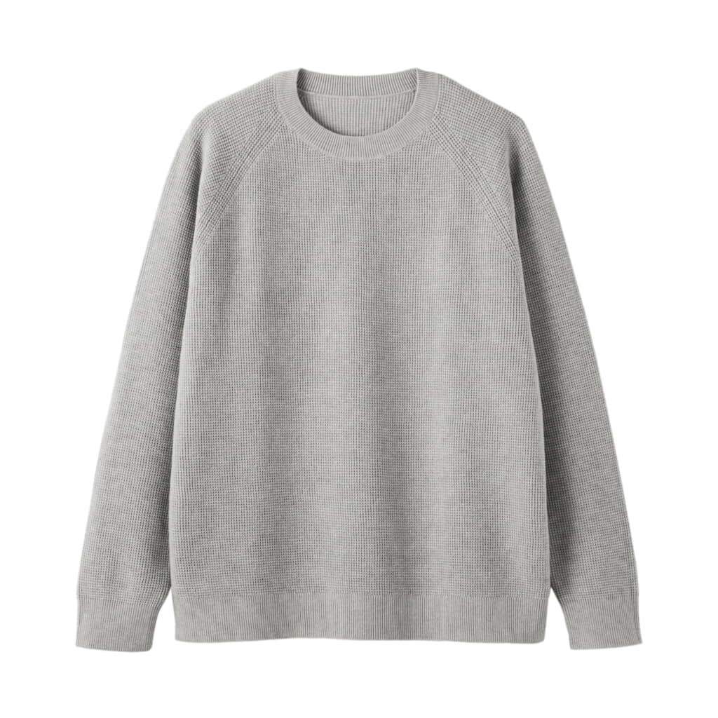第6位:紳士 洗えるワッフル編みクルーネックセーター