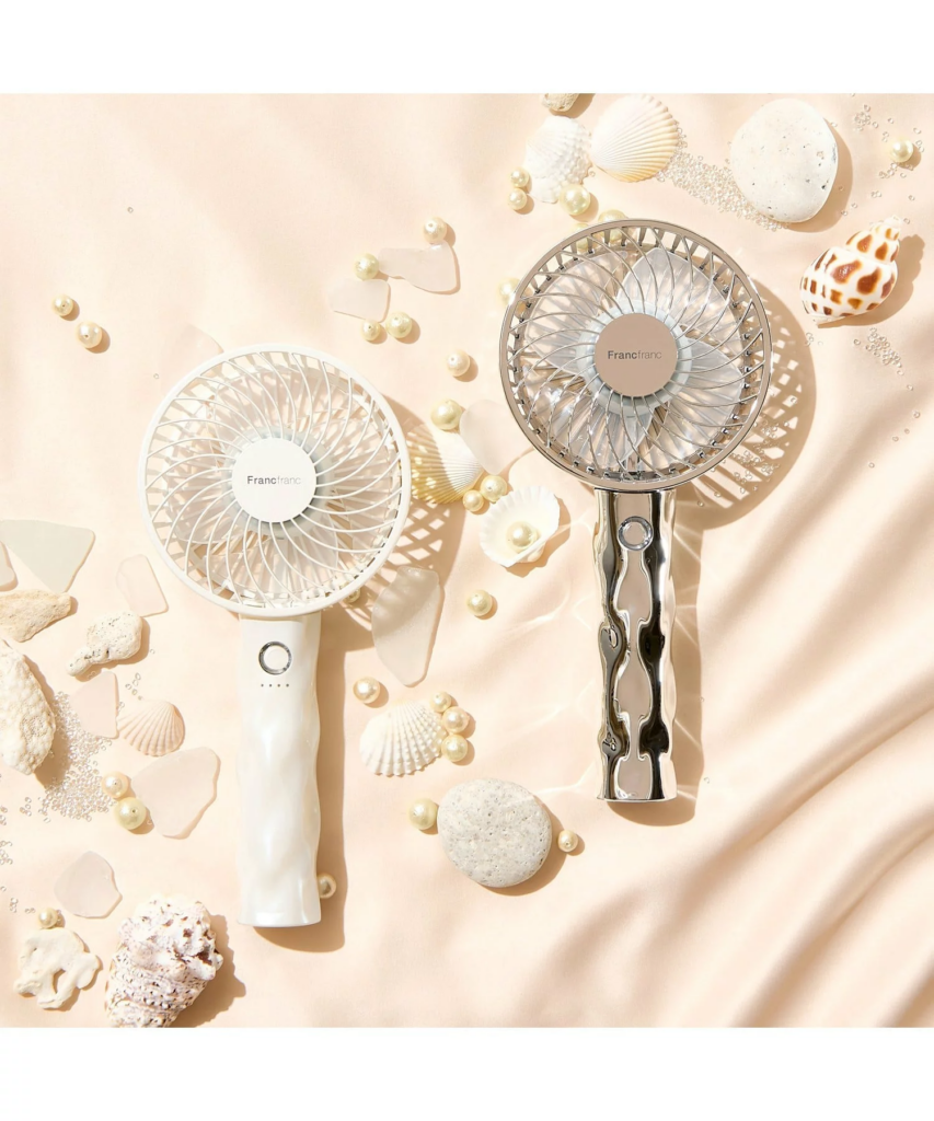 Francfranc(フランフラン)の「ハンディファン」が今年も登場しました。新作は、持ち手がウェーブになったおしゃれなデザイン。別売りのストラップ・アクセサリーで自分好みにカスタマイズできるのも魅力です。