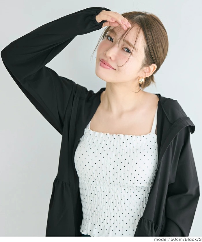 レビューでは「生地も厚すぎず薄すぎずで良かったです。身長156でMサイズ。お尻もすっぽり隠れてちょうど良かったです」「去年はすぐに売り切れて買えなかったので今年は早めに買いました!UVカットできておしゃれに着れそうです」「サラサラ生地で涼しく、小さく畳めるので使い勝手がいいです」「ふんわりとしたシルエットでとてもかわいいです!帽子のつばの部分もしっかりしてます」「接触冷感で着心地も今の季節丁度良いです」「可愛いし、ジップあげるだけでも首が隠れるのでUV対策しっかりしつつ可愛いです」「アイボリーを購入して良かったのでリピート買いしました!」「こんなの欲しかった!いつもこの時期の外遊びで首がやけてしまうので買ってよかったです!」「おしゃれに紫外線対策ができて嬉しいです」などの声が見られました。