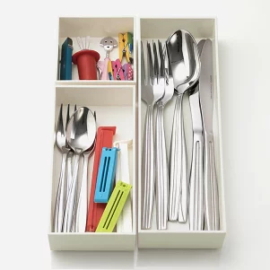 用途は幅広く、キッチンではカトラリーや小物の整理、デスク周りでは文房具やアクセサリーの収納など、さまざまなシーンで活躍。インテリアになじみやすいナチュラルホワイトのシンプルなカラーも魅力です。