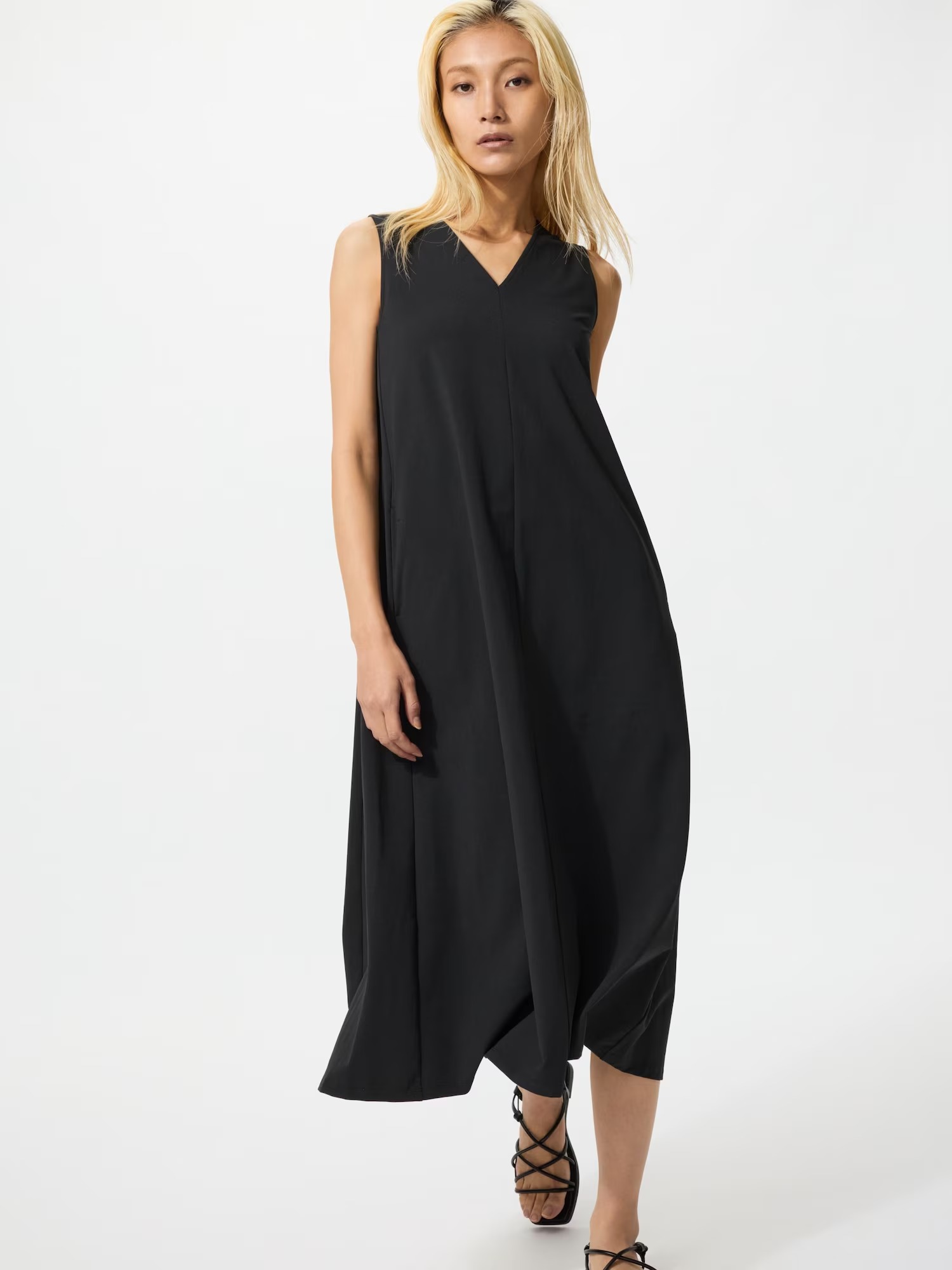 「ウルトラストレッチVネックワンピース/ノースリーブ」詳細画像