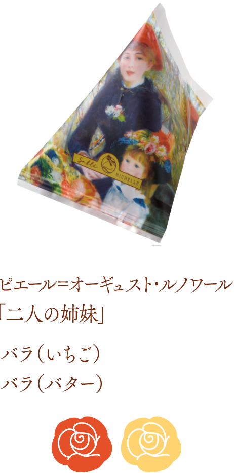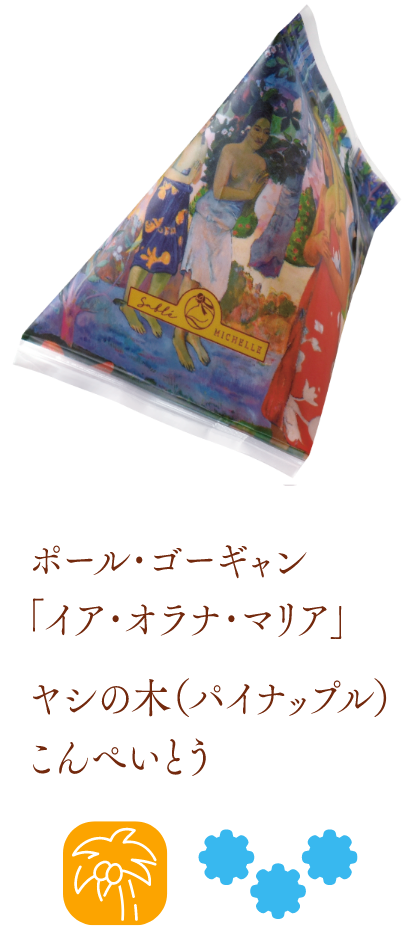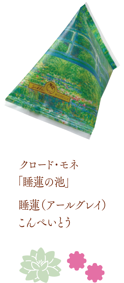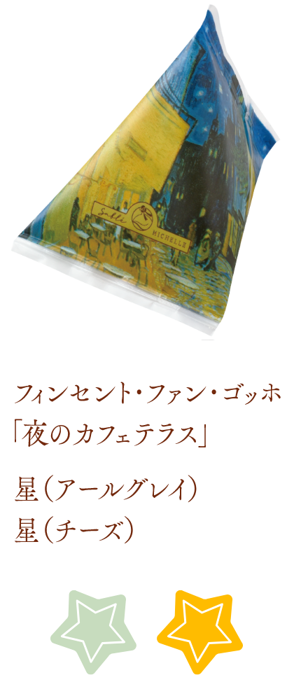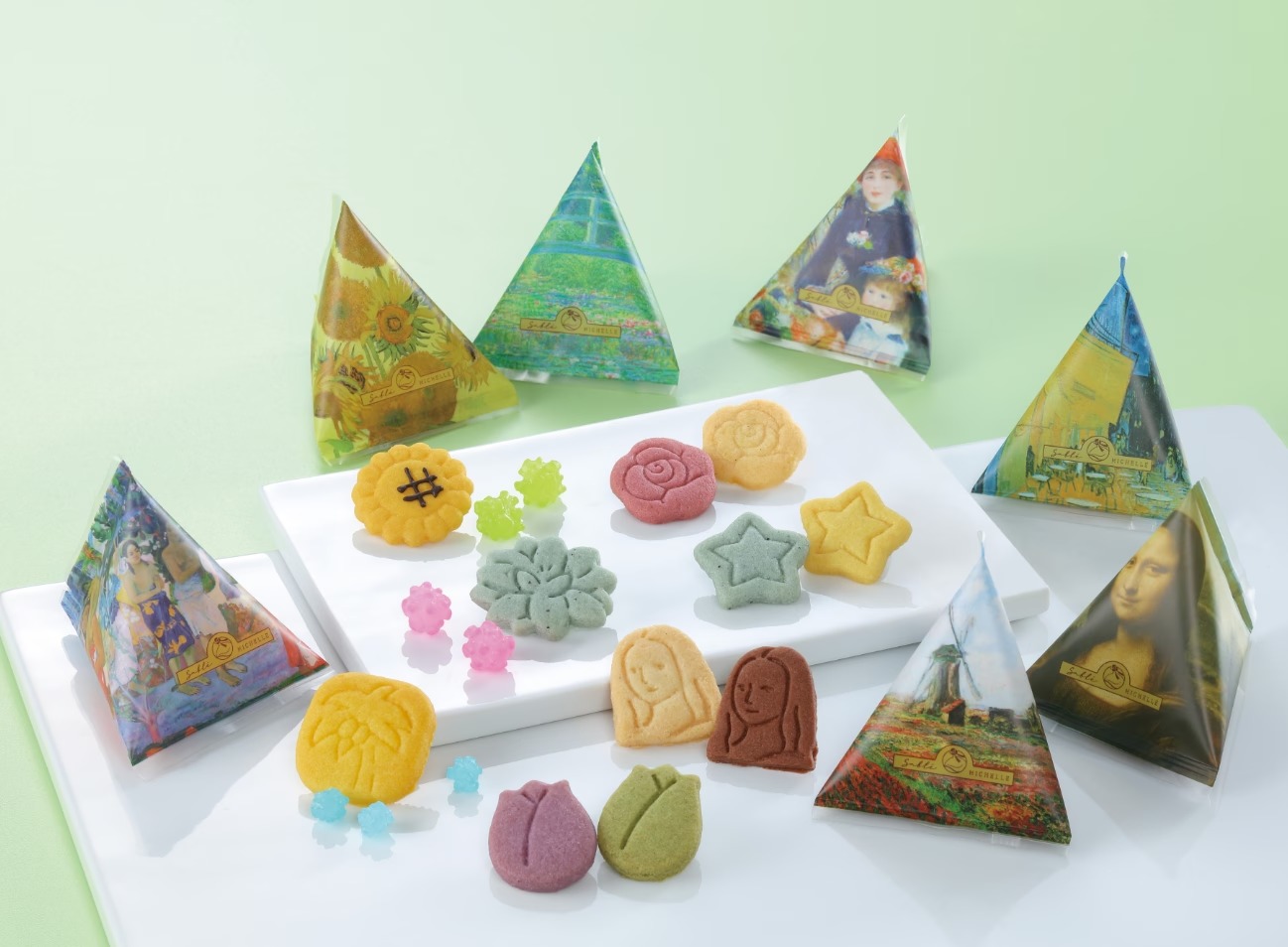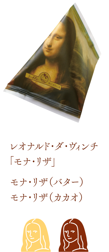 そんなサブレミシェルの「Gallery Mignon(ギャラリー ミニョン)」は、世界中で親しまれる名画の世界観を、てのひらサイズで彩り豊かに表現したサブレです。ゴッホの「ひまわり」パッケージではひまわりの花、レオナルド・ダ・ヴィンチの「モナ・リザ」は人物のシルエット、ゴッホの「夜のカフェテラス」は星、モネの「睡蓮の池」は花の形といったように、作品ごとに印象的なモチーフのサブレがかわいらしい商品。箱を開けた瞬間、小さな美術館をのぞくような気分にさせてくれる仕上がりで、見た目のかわいらしさとともに、風味豊かなサブレとしての味わいも楽しめます。