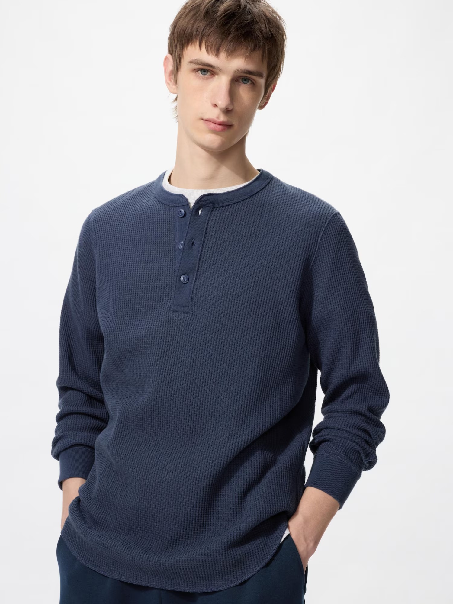 ユニクロ「ワッフルヘンリーネックTシャツ/長袖」の詳細画像