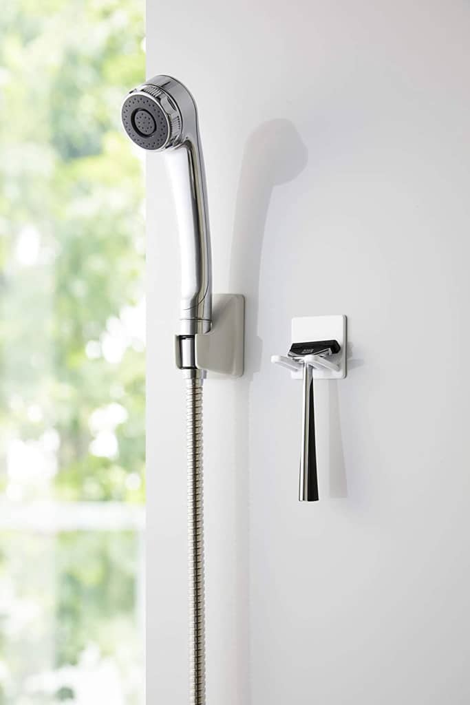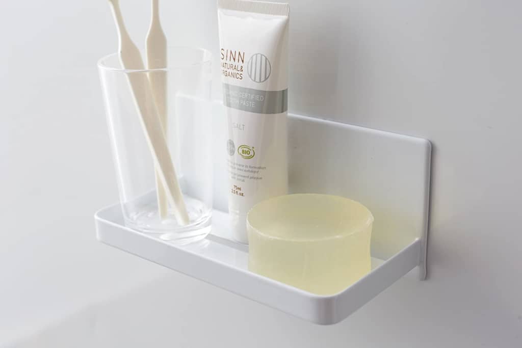 towerのバスルーム用アイテムの特徴は、マグネットを利用した「浮かせる収納」です。浴室という限られたスペースしかない空間を有効利用できて、水垢によるぬめりが発生しにくいのが魅力。
