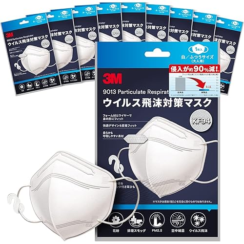 3位:3M マスク ウイルス飛沫対策 KF94 不織布 白 10枚入