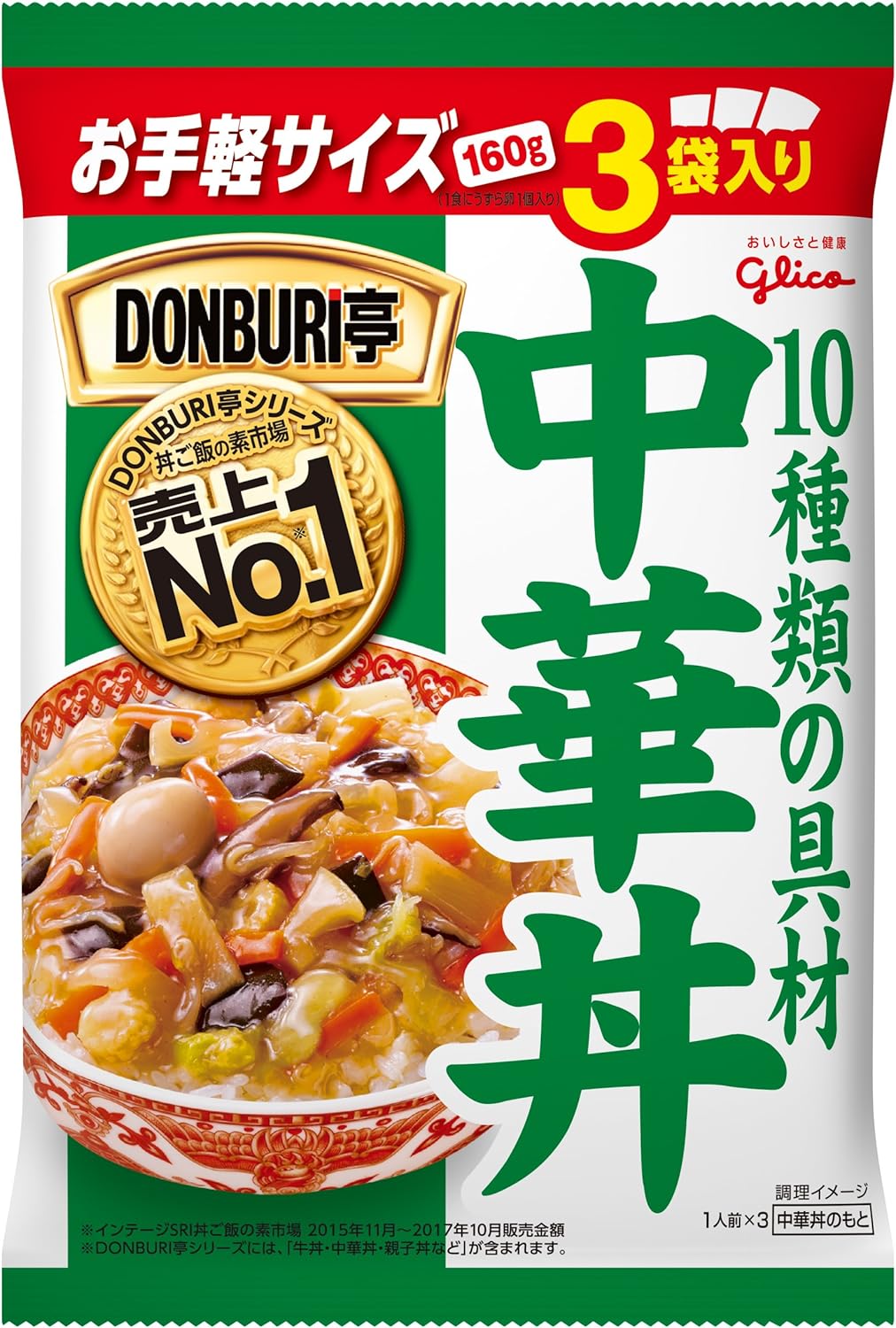 3位は江崎グリコの「DONBURI亭中華丼 3食」。価格は508円です。10種類の具材が入った食べごたえ抜群の中華丼。DONBURI亭シリーズで丼ご飯の素市場売上トップの大人気商品です。お湯で3~5分茹でるだけの簡単調理。中華丼は作るの少し手間がかかるので、ぱっと食べたくなった時に便利です。
