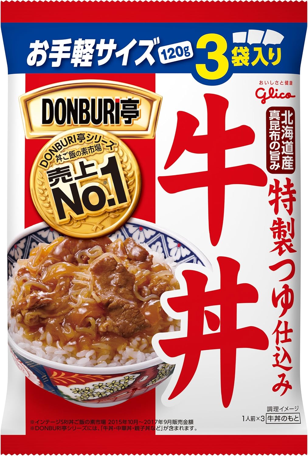 2位は江崎グリコの「DONBURI亭牛丼 3食」。価格は525円です。北海道産の真昆布のうまみがたっぷりつまった特製つゆを使用。濃厚な味わいが人気の秘密です。お手軽な120g3袋セット。こちらもDONBURI亭シリーズで人気の高い商品となっています。