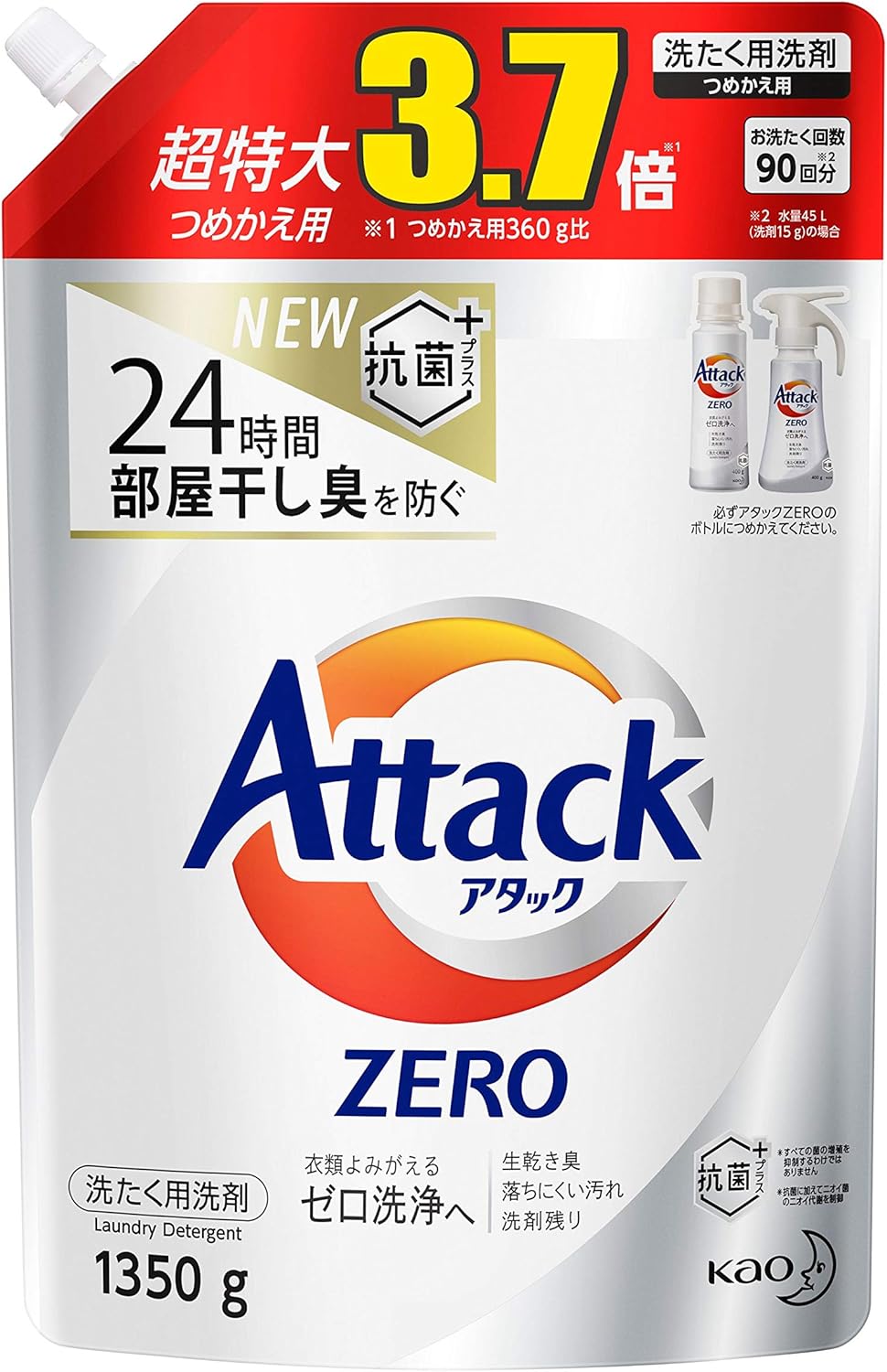 5位:【大容量】アタック ZERO(ゼロ) 洗濯洗剤 液体 詰め替え 1350g(約3.7倍分)