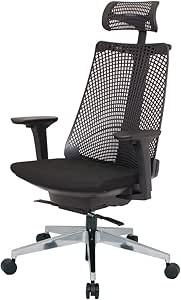 上下の首ふりに加え、高さの調節もできる高機能なヘッドレストを搭載。リクライニング時の頭部をやさしくサポートし、デスクワークのストレスを軽減してくれます。アジャスタブル肘置きは9段階の調節ができ、肘が接する面には柔らかいポリウレタンが採用されており、肘への負担も軽減される設計です。メッシュバックはしっかり腰をサポートしてくれて、落ち着いた座り心地になっています。