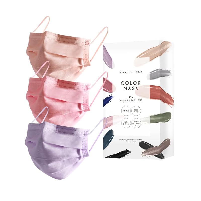 飛沫対策や花粉対策などで身につけたい「不織布マスク」。せっかくつけるなら、カラーにこだわってファッション性を高めたり、顔の印象を明るくしたりしたいですよね。主張しすぎない優しい色味のベージュやピンクは肌なじみがよく、優しい印象を与えてくれます。どんなファッションにも合わせやすく、使い勝手の良いカラーです。