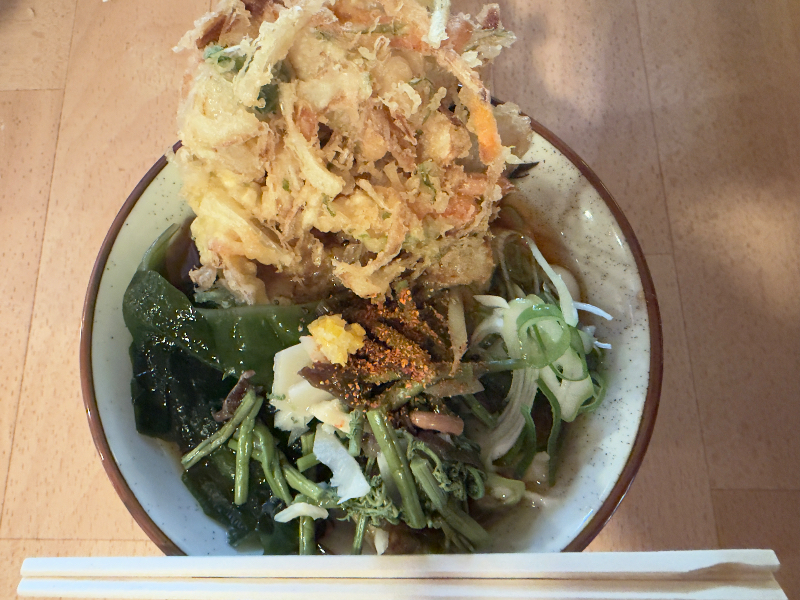 「はなゆう」は、御花畑駅を出てすぐのところにある立ち食いスタイルのそば屋。立ちで食べるカウンターの他に、椅子に座って食べられるカウンターが5席あるお店です。「天玉」「きのこ」「山菜」などさまざまなメニューがあり、それぞれそばとうどんを選べます。400円のメニューが多くあり、大盛りは+100円です。多くのメニューは大盛りにしてもワンコインで食べられます。
